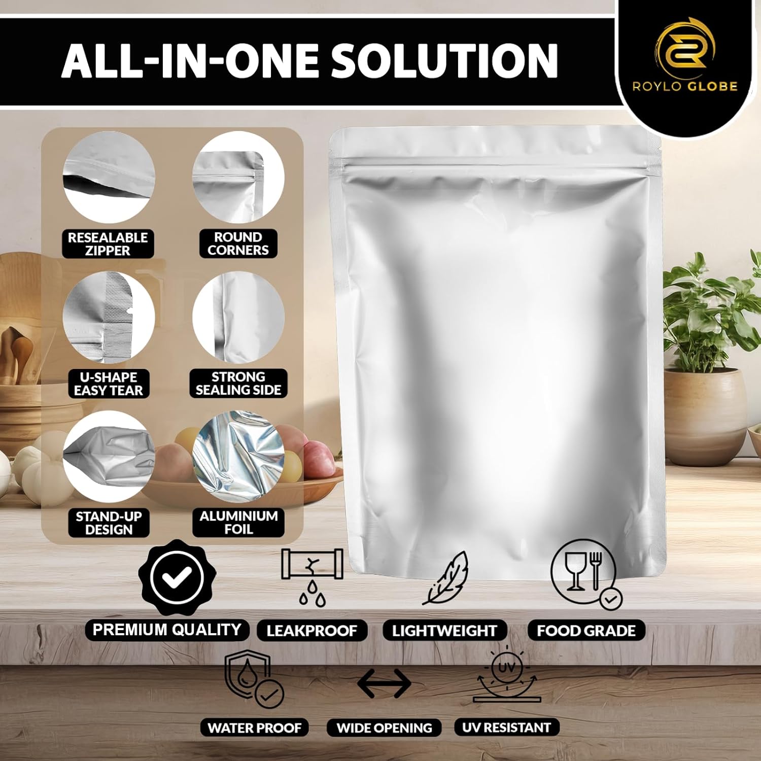- SPECIAL CHARACTERISTICS: Meet our super cool mylar storage bags. They have 100 oxygen absorbers of 400cc (Available in pack of 10) and also have 500cc oxygen absorbers (50 Packs) inside, keeping your food extra fresh. Our reusable freeze dry bags have airtight power to keep everything secure. These mylar bags for food storage are also super friendly; you can open, close, and reseal them whenever you want.