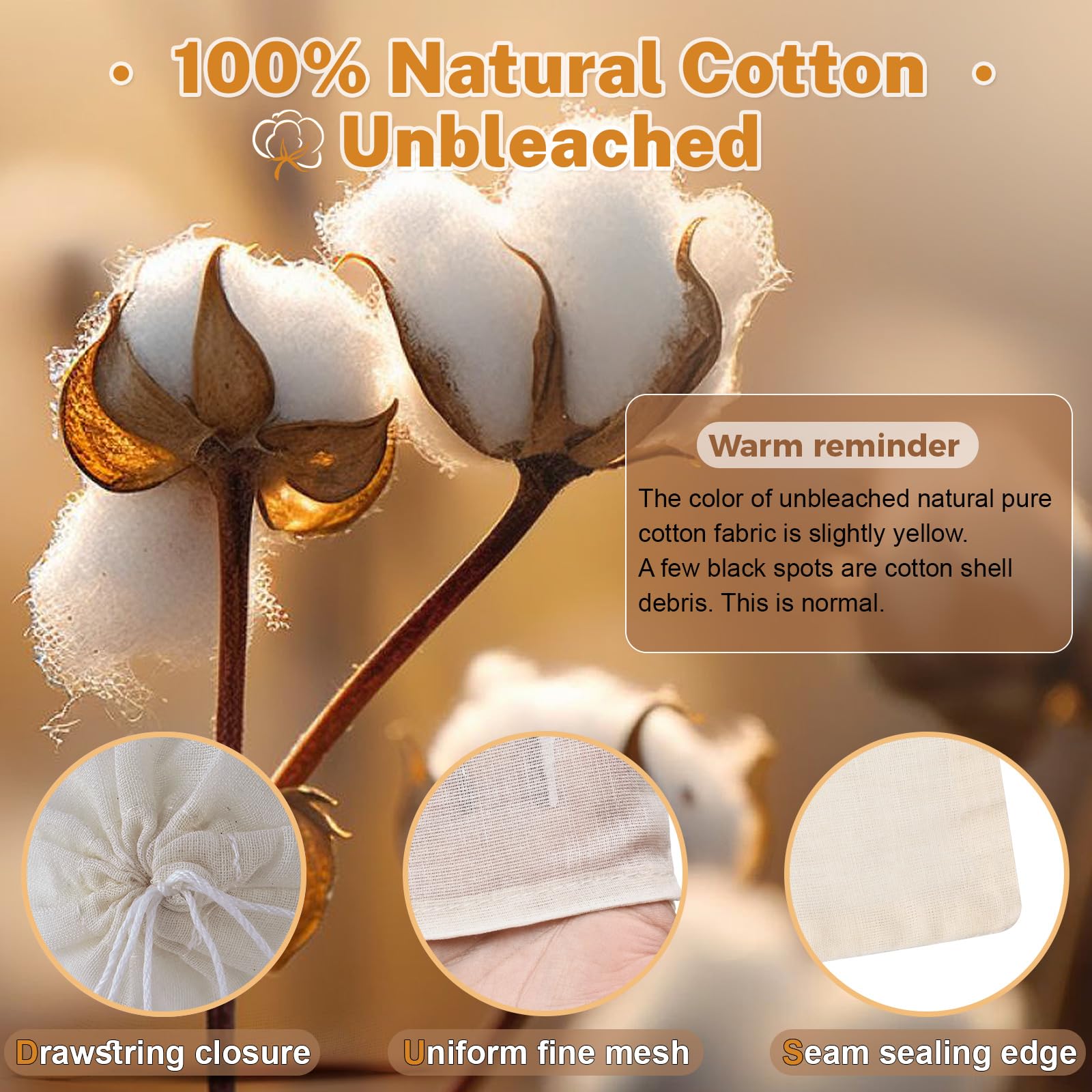 - Pure Natural Cotton Material: Our small cloth bags made of 100% unbleached cotton, which is safe and has no odor after boiling. Some small black spots that may appear on the cotton bag are cotton seeds when crushed, just simply wash before use