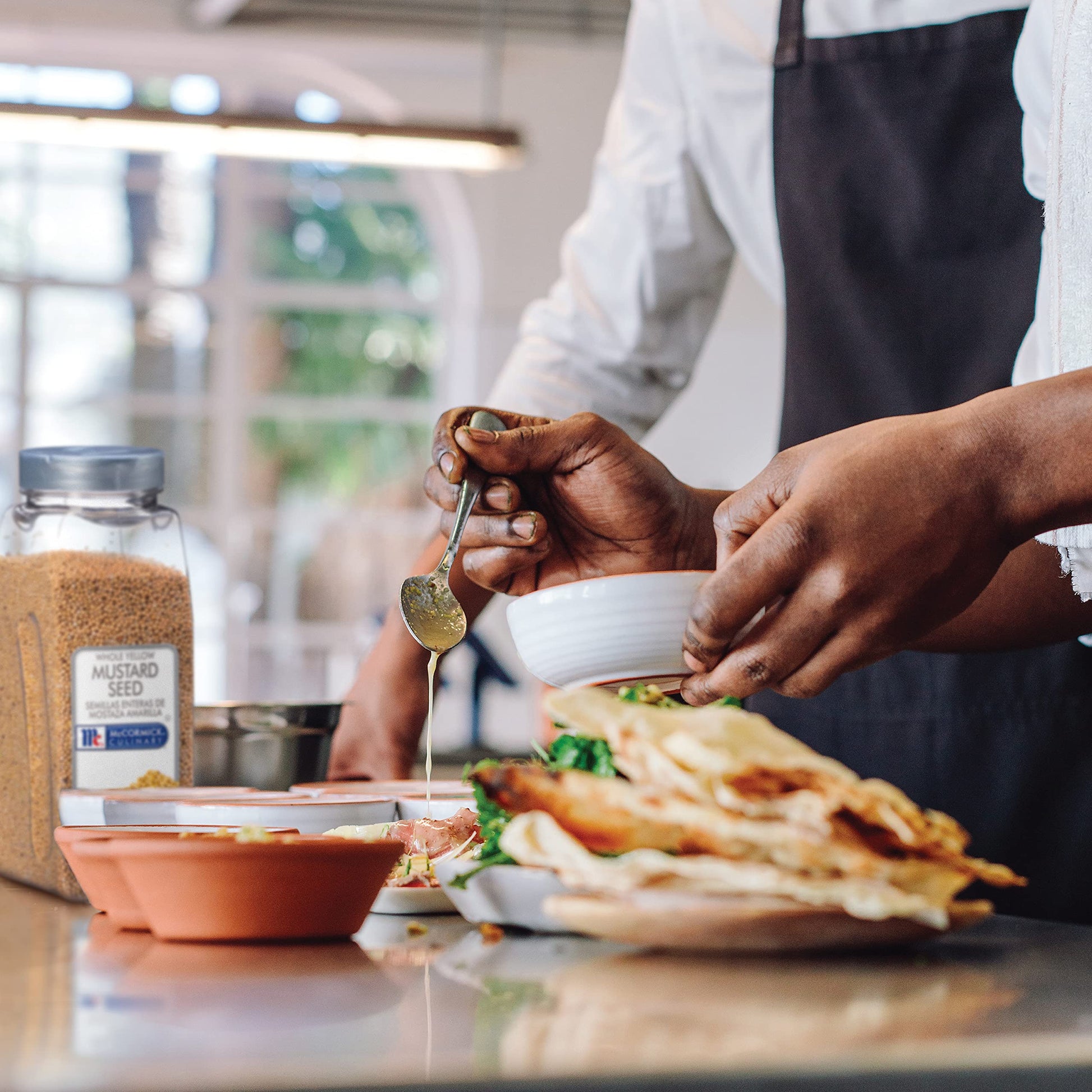 McCormick Culinary Whole Yellow Mustard Seed, which is part of the essential collection specially made for chefs, infuses dishes with an initial floral sweetness before delivering a pungent yet mellow taste and aroma. Yellow mustard is one of the oldest and most popular spices, and it offers a milder taste compared to brown mustard seeds. As a result, it's often used in a variety of regional dishes as well as all kinds of pickling blends and condiments. To achieve the ideal flavor profile, each 22-ounce container contains carefully sourced yellow mustard seeds. By specifically focusing on features like size, color, shape and taste, McCormick yellow mustard seeds deliver exceptional quality and pure taste in the kitchen. No matter what kinds of dishes you serve up on your menu, you'll find that this spice container will make it easy to achieve consistent and custom flavors. Whole yellow mustard seeds need to be ground and mixed with water to release their full flavor. Keep in mind that the colder the water is, the more bitter the results will be. For a mellow, craveable taste, warm water works best. With their tanginess and fresh scent, McCormick yellow mustard seeds are perfect for making homemade mustard. The flavor also pairs well with other spices like pepper, cumin and garlic. You can make rubs with custom blends and sprinkle them on everything from barbeque to cold meats. Mustard seeds are also used for pickling and creating chutneys and vinaigrette dressings. You can mix them into your favorite sauces, marinades, dressings and curries to transform all kinds of dishes. Because great-tasting meals start with ingredients you can trust, McCormick yellow mustard seeds are non-GMO and made without any added MSG. Each container is kosher and free from the eight major allergens, so you can feel good about the dishes on your menu.