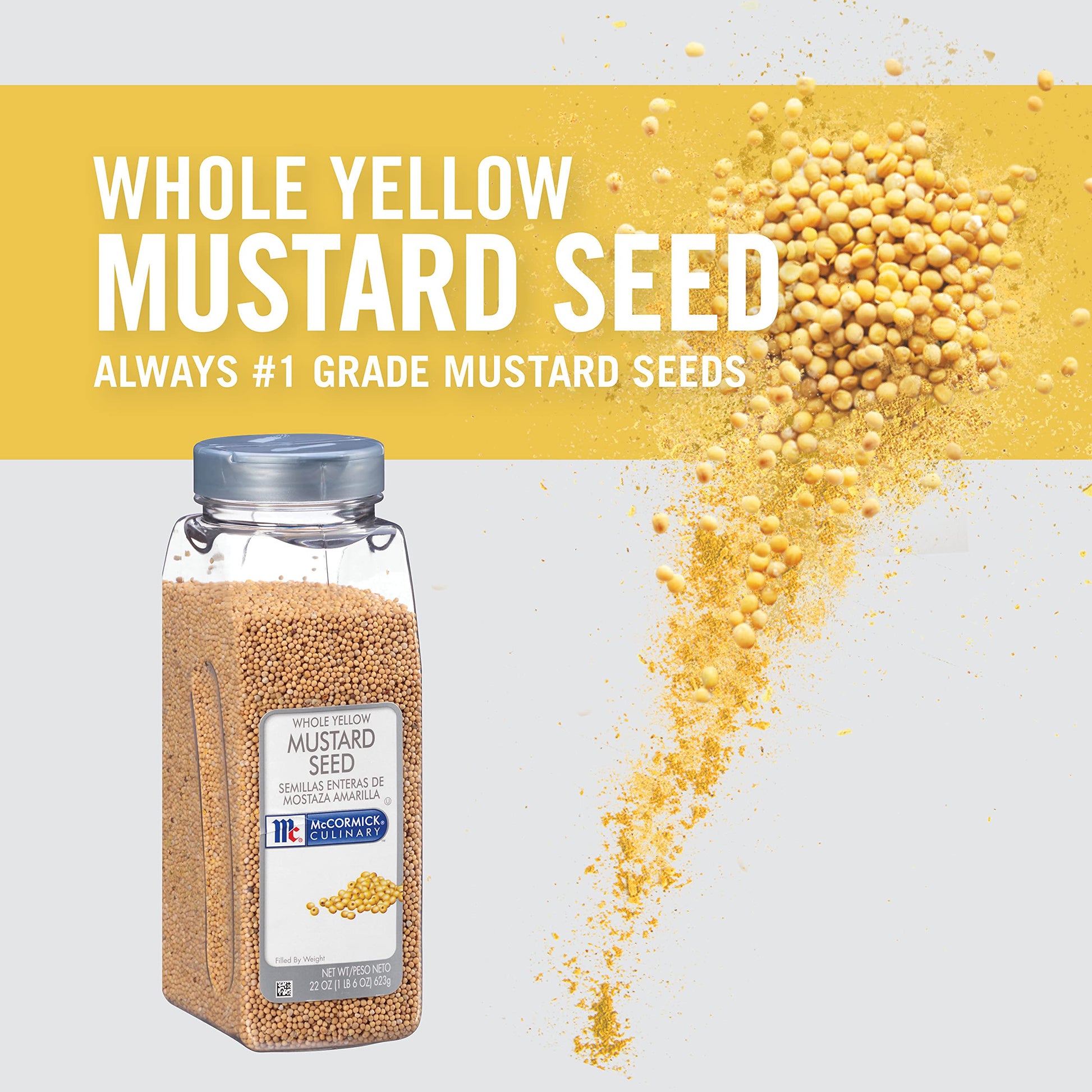 McCormick Culinary Whole Yellow Mustard Seed, 22 oz - One 22 Ounce Container of Yellow Mustard Seeds, Perfect for Pickling, House-Made Rubs and Dips